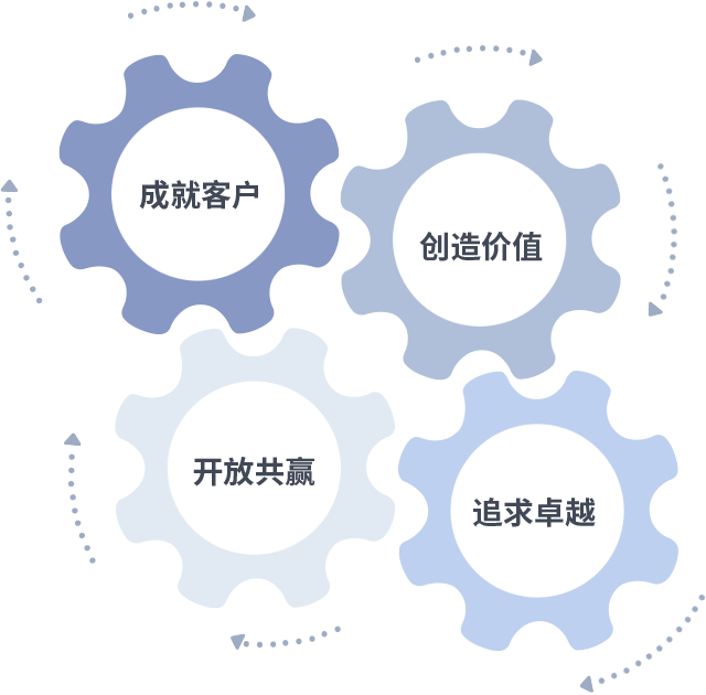 成就客户是一切决策的出发点,创造价值是衡量所有工作的标准,追求卓越是拉斯维加斯做事做人的态度,开放共赢是拉斯维加斯的格局也是最终的结果。价值观的齿轮环环相扣,推动着组织里的每个人不断向前。